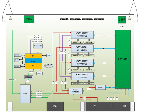 l 板載4片V6 FPGA,型號支持XC6VLX240T、XC6VSX315T、XC6VSX475T
